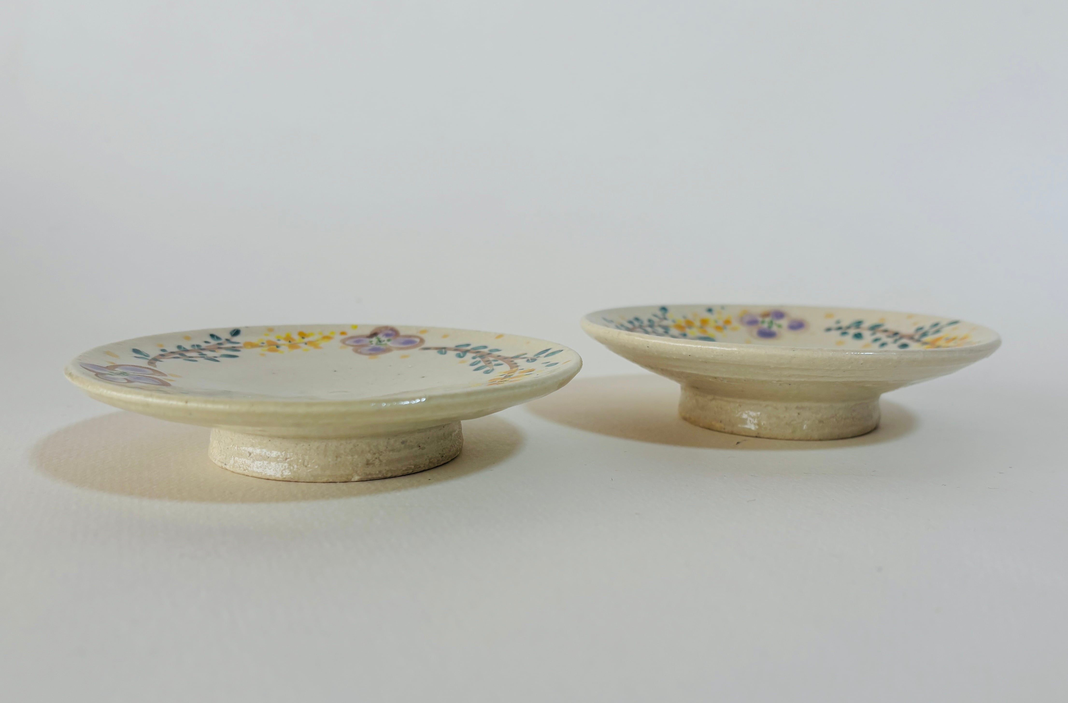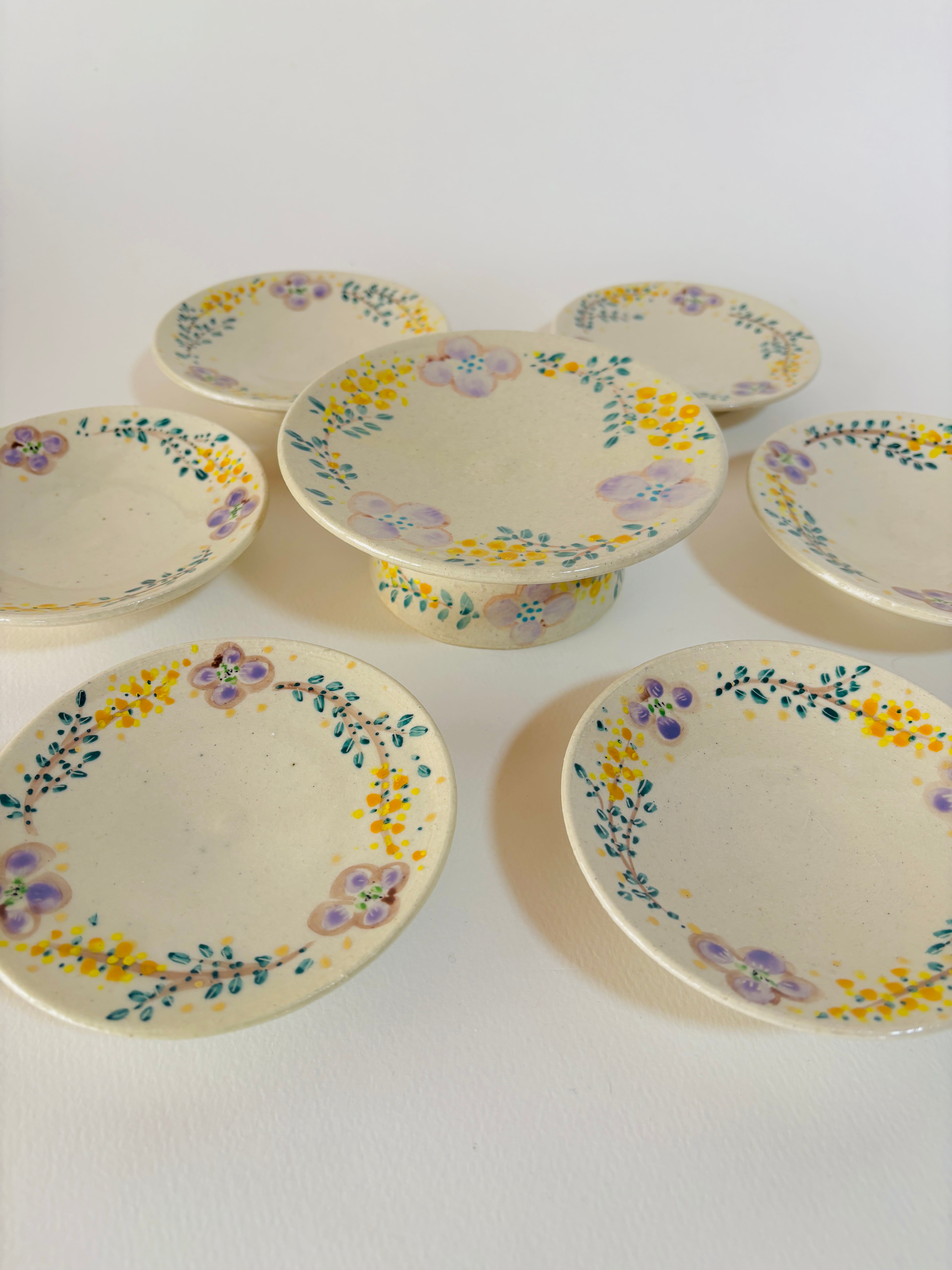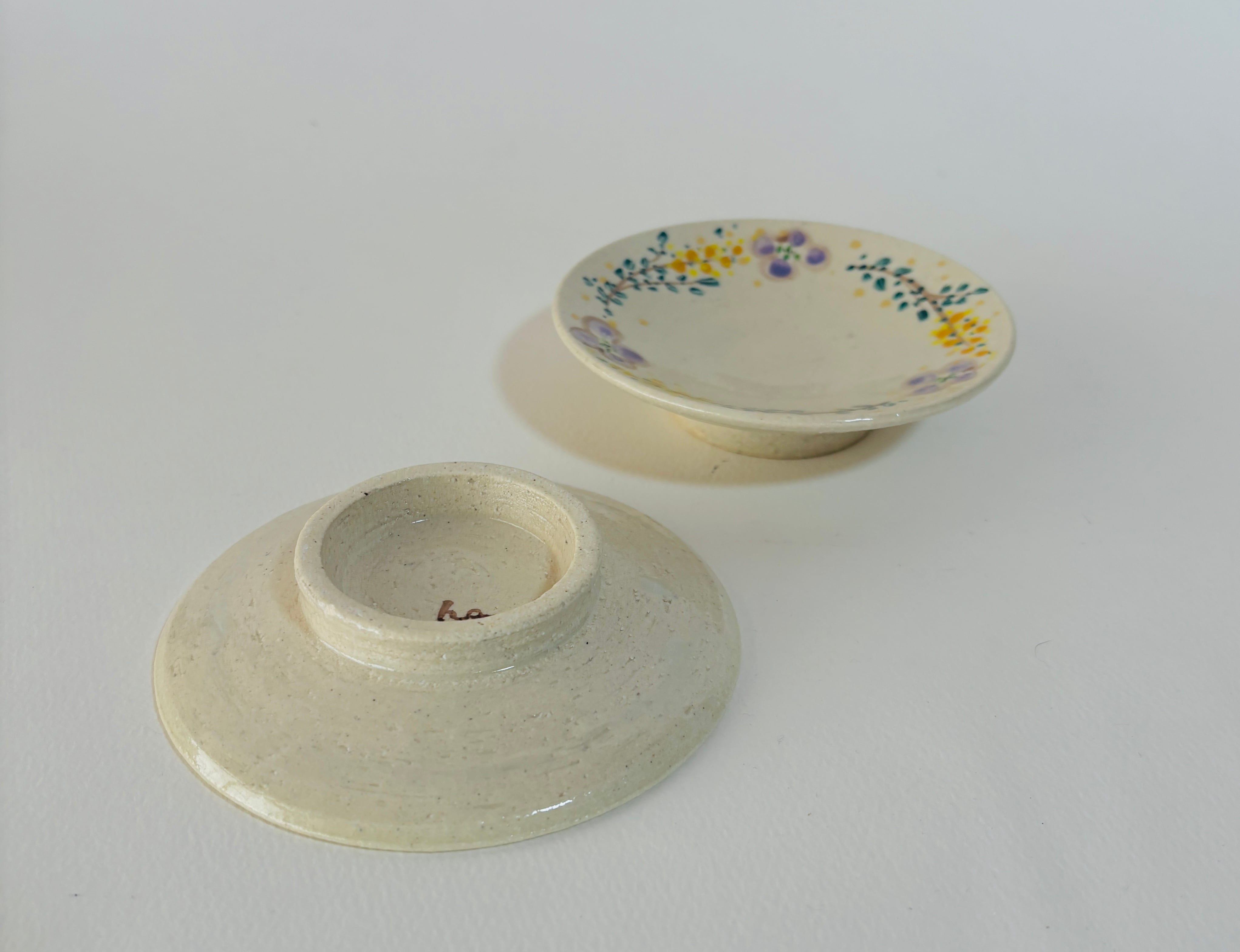 お菓子や取り皿としても大活躍な少し高さのある小皿にやさしいミモザを描きました♪